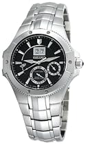 - Stainless-steel case; black dial; date-month functions
